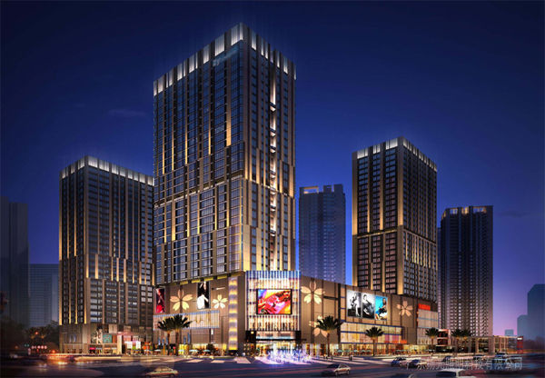 建筑裙樓外圍的燈光從觀看和感受入手,以體量為單位,強(qiáng)調(diào)大面積光感給人和車(chē)流的視覺(jué)沖擊,從視覺(jué)的角度吸引消費(fèi)群體。