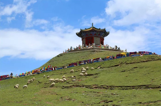 一路前行來到青海農(nóng)牧區(qū)的分界嶺---日月山,日月山是一個分界點(diǎn),東側(cè)阡陌良田,一派塞上江南風(fēng)光;西側(cè)草原遼闊,牛羊成群,是一幅塞外景色。日月山是宋元各代甘青地區(qū)通往川藏一帶的必經(jīng)之路,也是文成公主經(jīng)日月山赴吐蕃和親形成的唐蕃古道。高原上的日月山,山勢起伏,峰嶺高聳,在若隱若現(xiàn)的紅土層里,仿佛看到了唐朝文成公主進(jìn)藏和親時,途徑日月山給漢藏人民留下的許多美好的記憶和傳說。