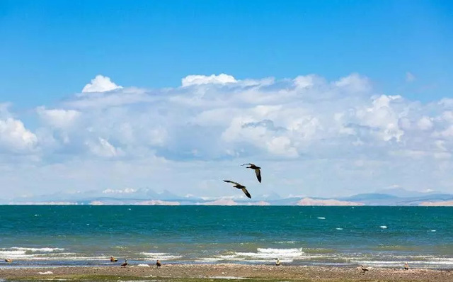 經(jīng)過日月山,到達(dá)青海湖。青海湖又名“措溫布”,即藏語“青色的?!敝?,位于青海省西北部的青海湖盆地內(nèi),既是中國最大的內(nèi)陸湖泊,也是中國最大的咸水湖。由祁連山的大通山、日月山與青海南山之間的斷層陷落形成。