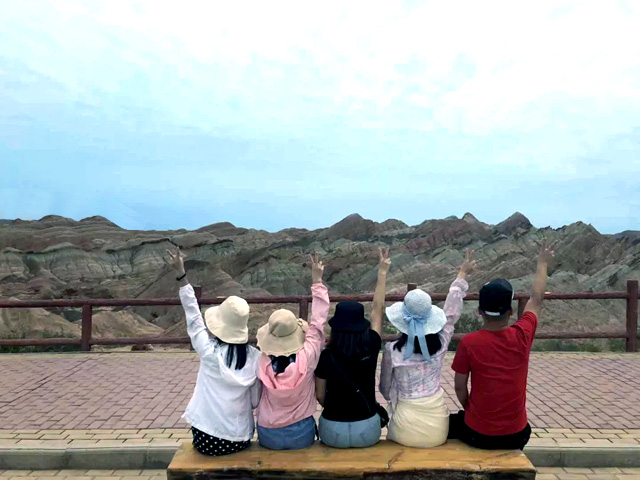 7月29日,穿過一望無際的草原,我們來到了甘肅張掖,那個在一日之中,一年四季,無論晴雨早晚,都有不同的景色七彩丹霞。