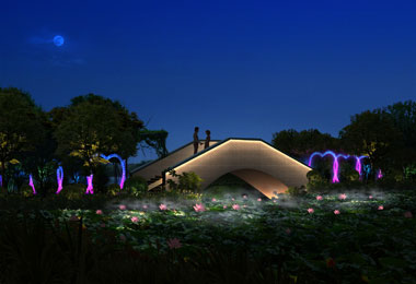 通過燈光可以改善游輪碼頭視線范圍,以增強(qiáng)整個湖岸夜景的燈光效果,從而使“水、樹、陰影”融入燈光中的景觀帶中,創(chuàng)建夢幻般的港灣夜景。